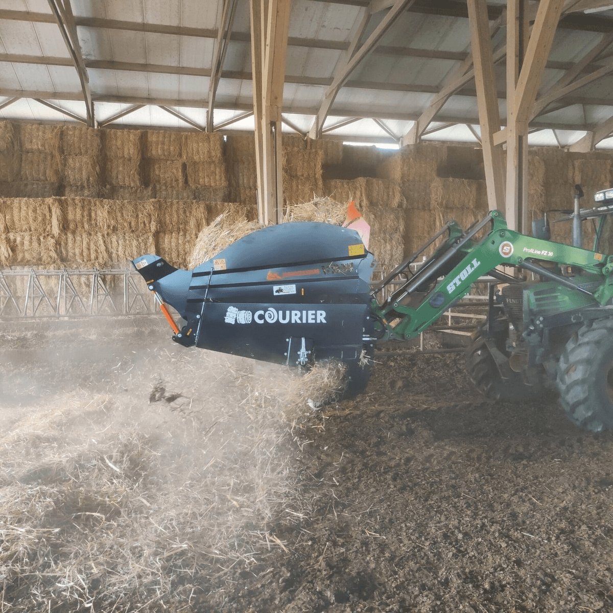 Une grande gamme de pailleuses pour bottes rondes et/ou carrées pour logettes, secteur paillés et autres pour tous types d’engins tels que valets de ferme, télescopiques, tracteurs avec tous types de puissances. Projection de 1,5 m à 20 m selon la paille, la puissance, la hauteur de levée et bien sur le modèle choisi. Existe en sortie droite ou gauche ou les deux, ou en sortie basse pour le paillage sous les pis de vaches dans les logettes, des box à chevaux, des box quarantaine et aussi avec un hayon élévateur et éjection via la goulotte pivotante à 270°.