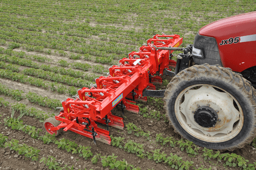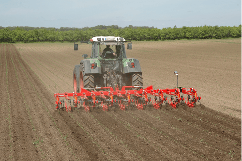 La bineuse arrière est équipé d'un système de guidage automatique par le 3ème point, un binage mécanique jusqu’à 6 % en dévers est possible. Au-delà, possibilité de compléter par un pré-guidage hydraulique en option.