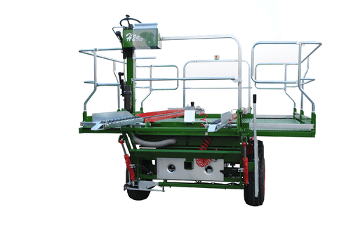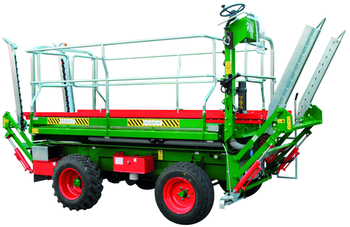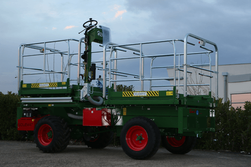 Plateforme unique à élévation hydraulique, ouverture électro hydraulique des balcons indépendante, largeur fermée 1m70 et ouverte 3m20, hauteur de levée 2m90 et longueur 3 m (PE3000) ou 4 m (PE4000), réservoir gasoil de 40 L, frein à disques, multi disques à bain d’huile (4 roues), barre de traction, boite de vitesse électrique, blocage de différentiel arrière à commande