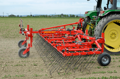 Cette gamme de herse premium AEROSTAR-FUSION sont des herses étrille qui permettent d’étriller efficacement les cultures arables comme le maïs, le soja, le tournesol, les céréales, la féverole, la betterave sucrière, etc., également les cultures en planches ou les cultures sur ados (de pomme de terre …) et les cultures spéciales (comme les légumes, les herbes, etc.).