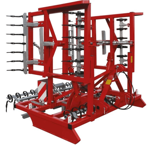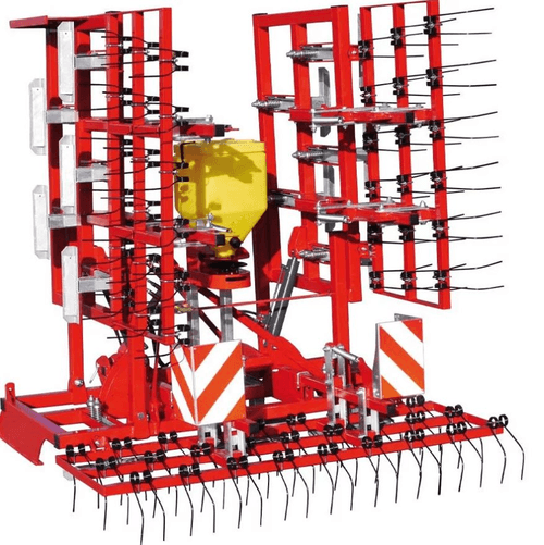 Elles ont des largeurs de travail de 5 m à 7,2 m. Herses munies de racleurs disposés en deux rangées en quinconce pour niveler, étauper et niveler et équipées de lames d’usures pour éviter les frottements et protégeant le châssis. Equipées de dents vibrantes ou de dents couteaux sur certains modèles et de dents étrilles sur d’autres toujours selon le modèle et les besoins.