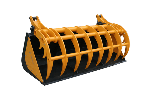 Benne à grappin avec système de serrage.