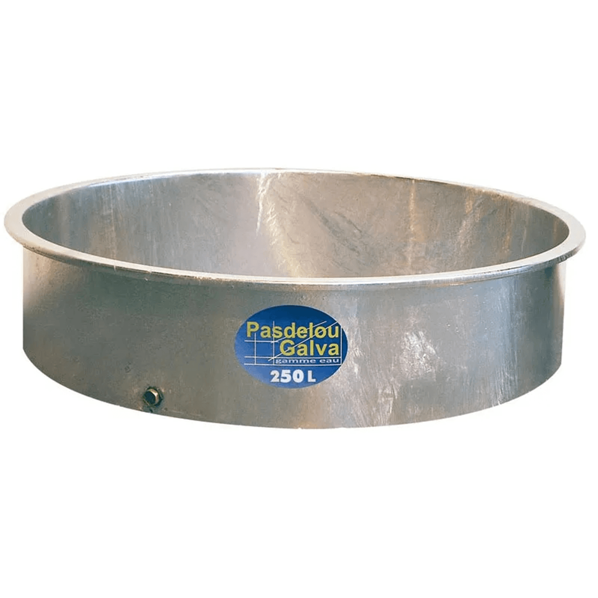 Sur les modèles circulaires, fond plat nervuré pour éviter la déformation, bouchon passe paroi en laiton et pourtour d’une épaisseur de 2 mm. Hauteur de 0,31 m (modèles ovin, bovins) à 0,85 m (modèle spécial chevaux) et 0,75 m pour les modèles rectangulaires. Diamètres des modèles forme rondes de 1,12 m à 1,76 m.