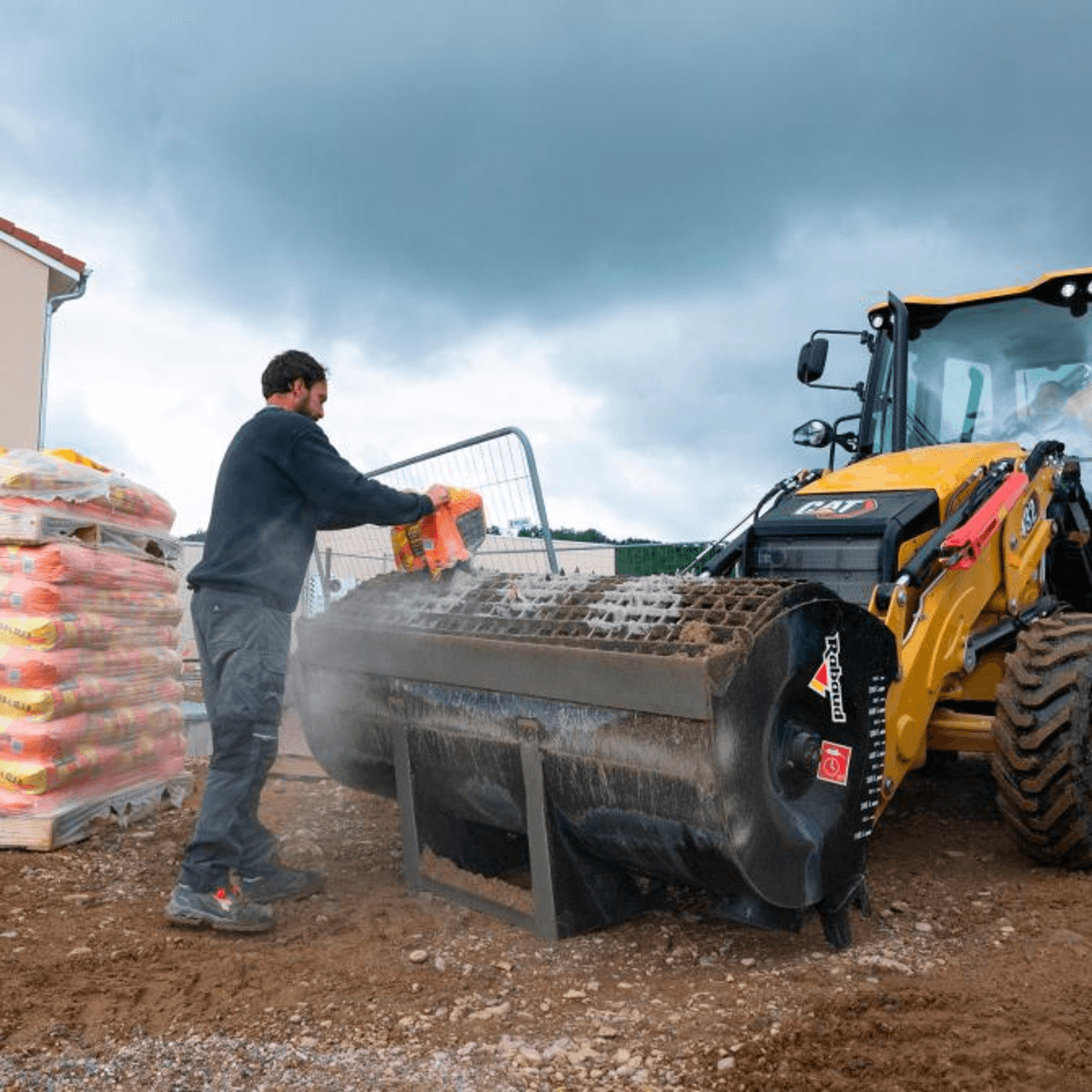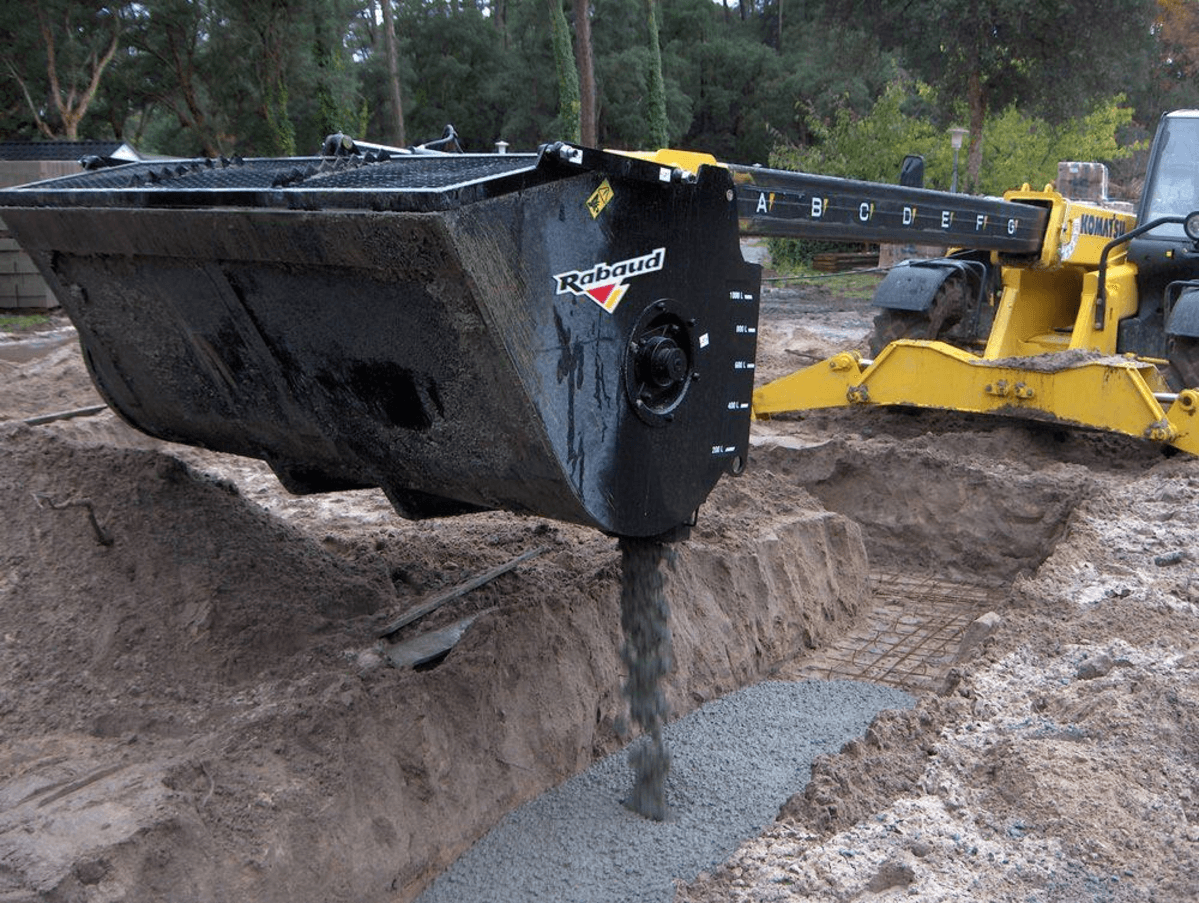 Le godet malaxeur à béton TUBOMIX s’adapte à différents porteurs tels que télescopique, chargeur, pelle, mini-pelle...afin de ne pas utiliser un camion toupie et d’apporter la quantité nécessaire au bon endroit. Équipé de véritables pales en acier anti-abrasion interchangeables rapidement permettant un mélange des matériaux de façon homogène et rapide. Disponible en différents volumes, de 100 à 1100 litres pour s’ajuster à l’engin porteur. Moteur hydraulique sans drainage diminuant les coûts de montage. Les godets TURBOMIX GB avec grille boulonnée et les godes TURBOMIX GH à ouverture de grille hydraulique.