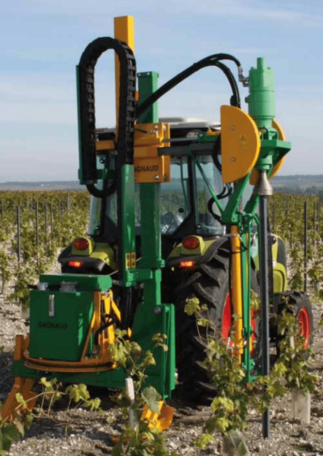 Une grande gamme d’enfonces pieux (en bois ou métallique) pour les vignes avec attelage 3 points ou montage à l’avant entre les roues du tracteur ou sur machine à vendanger et enjambeur ou pour les vergers sur minipelle, pelle et chenillard pour les endroits difficiles d’accès. Choix d’équipements en option pour chaque utilisation.