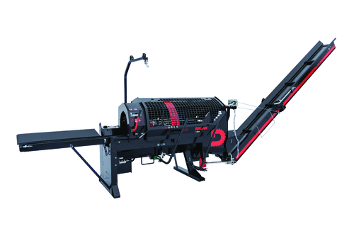 Combiné bois de chauffage, pour tracteur +/- 40 cv, diam. de coupe 36 mm, longueur de coupe de 25 à 60 cm, fendeuse 9T, commande manuelle, fendeuse ultra rapide, tapis d'évacuation orientable à chaîne, commande manuelle, réglage manuel de la hauteur du coin, temps de cycle très court.