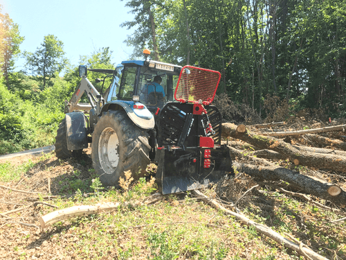 Gamme de treuils forestiers de 4,3 à 10 tonnes électro hydraulique. Qualité professionnelle : embrayage renforcé type poids lourds, double maintien des pignons, bêche large de série (haut et bas de même largeur pour la protection du tracteur), poulies en fonte, acier de haute qualité, support de tronçonneuse, grille réglable, caisson de rangement, câble avec chocker et douille de blocage, cardan. Nombreuses options disponibles