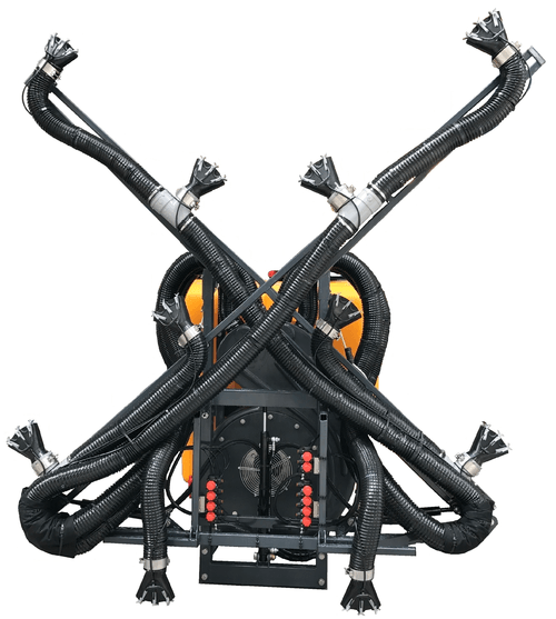 La gamme de pulvérisateurs pneumatiques se compose de différents types de châssis tels que châssis arrière, châssis semi porté, châssis porté. Capacité de 400 à 2000 L.