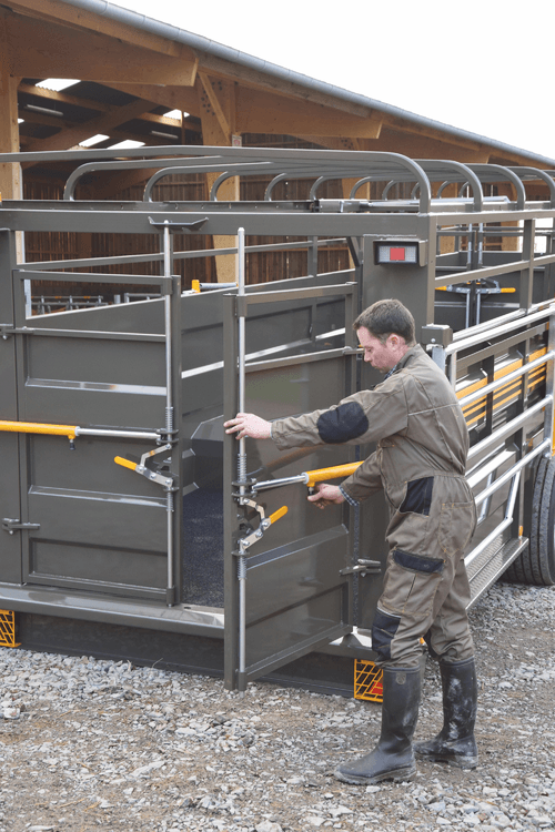 Une gamme de bétaillères pose au sol faite en 2 finitions soit un fond antidérapant résine soit fond tôle larmée 4/6mm. Peinture Blackson. Ces bétaillères ne nécessitent pas de pont arrière de chargement puisque l’ensemble de la caisse s’abaisse près du sol à une hauteur de seuil de chargement comprise entre 29 à 35 cm selon le modèle de bétaillère. Flèche à ressort ou flèche fixe selon les modèles. Béquille cric. Gyrophare LED. Large ouverture des portes arrière pour faciliter l’accès et le dégagement des animaux. Marche pieds latéraux et poignets sur toute la longueur. Nombreux points d’attaches intérieures pour les animaux. Nombre de bêtes à titre indicatif entre 8 et 18 bêtes selon les modèles. Charge utile de 5,6 T à 12,3 T. 10 modèles freinage hydraulique et 8 modèles freinage pneumatique. Choix d’équipements en option.