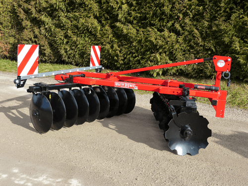 * CP pulvériseur porté de conception V avec châssis tube 80 x 80, train de disques de 120 x 60 mm. Arbres carré de 40, palier avec roulement à billes triple étanchéité.
