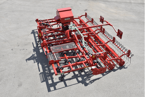 Les rouleaux arrière sont réglables en hauteur par brochage. Les dents niveleuse double assurent la finition et peuvent être retirées pour le déchaumage.