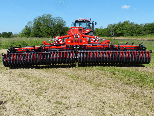 Herse à peignes simple rangée diamètre 10 mm entre la deuxième rangée de disques et le rouleau.