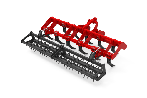Châssis en 2 rangées de dents pour laisser passer un grand volume de résidus végétaux et éviter un effet de bourrage. Plusieurs catégories d'attelage sont disponibles.