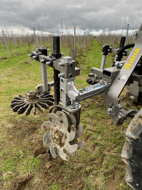 Cadre porte-outils polyvalent pour vignes de 1,30 à 3 m. Attelage 3 points frontal ou arrière. Différents équipements possibles : disques émotteurs et doigts, lames, tondeuses-épampreuse.
