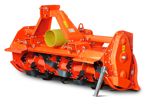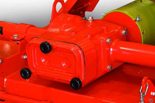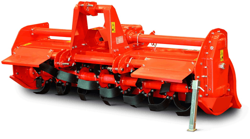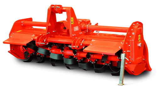 Fraise rotative pour tous types de terrains , largeurs de travail de 0.85m à 2.35m, transmission engrenages, patins, rotor à lames coudée ou droite ou pointes, capot arrière, rouleaux grand diamètre.