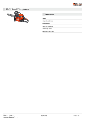 Tronçonneuse thermique pour travaux forestiers. GS 651. Moteur Emak. Cylindrée 63,4 cc. 1 cylindre 2...