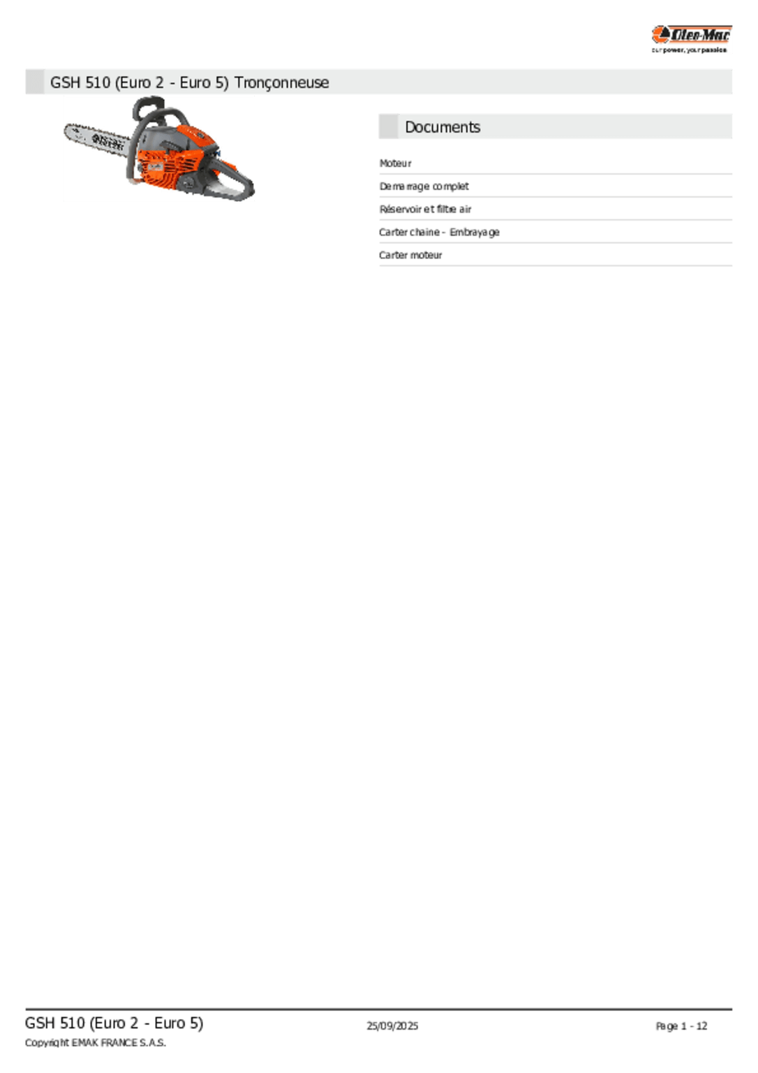 Garantie Oléo-Mac 2 ans