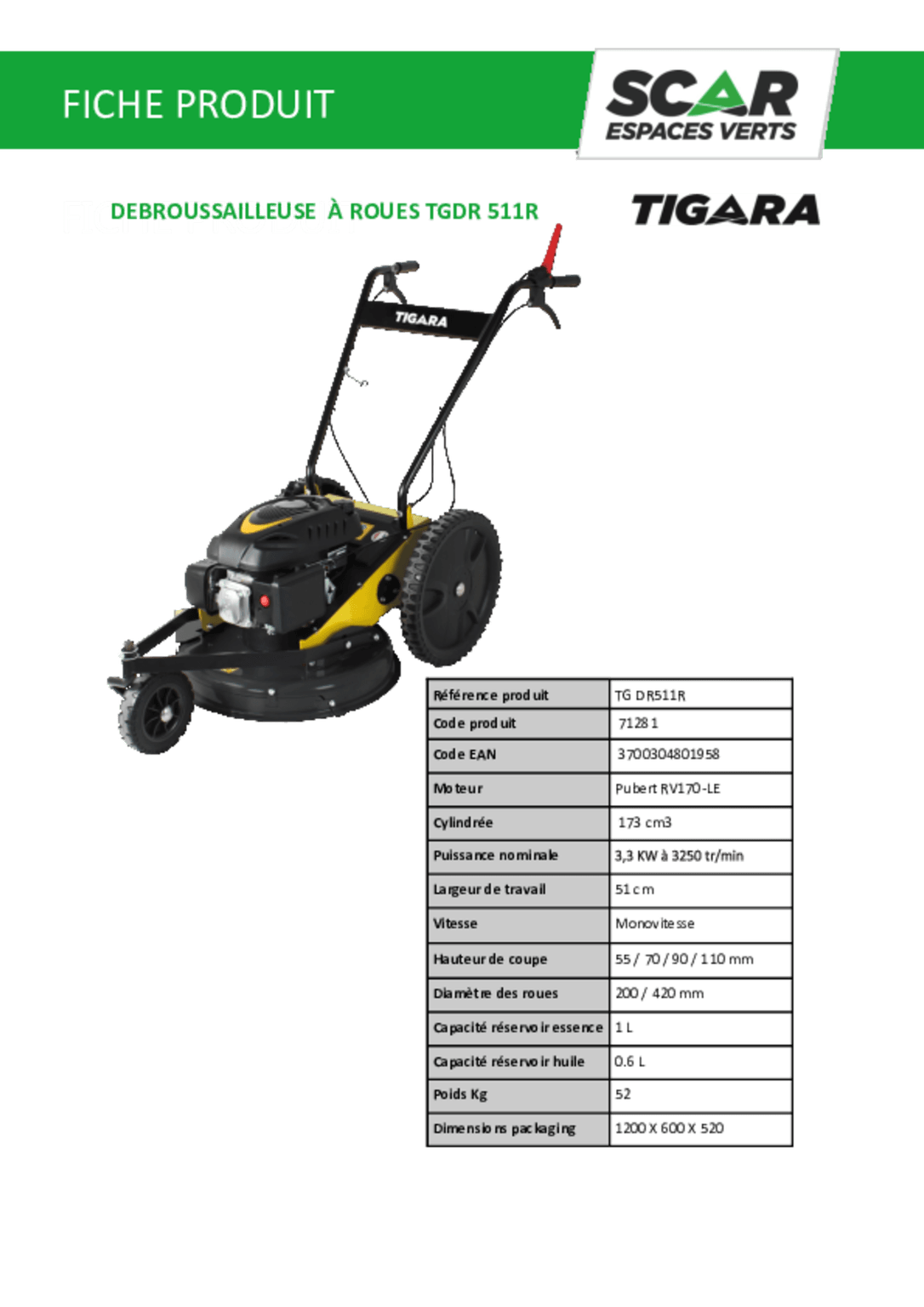 Hauteur de coupe de 55 à 110 mm, réglable au guidon 4 positions.