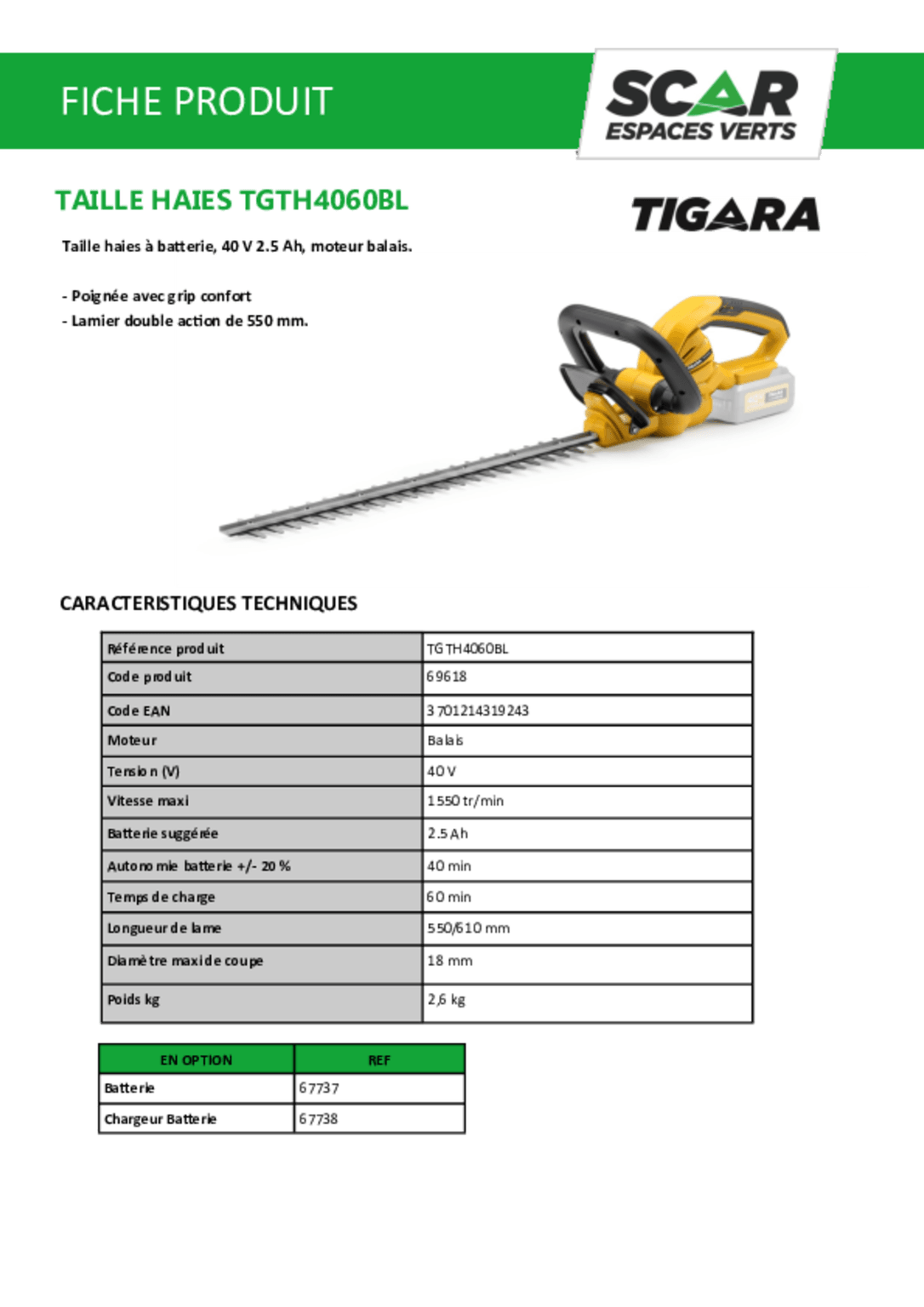 Longeur de lame : 550/610 mm.
