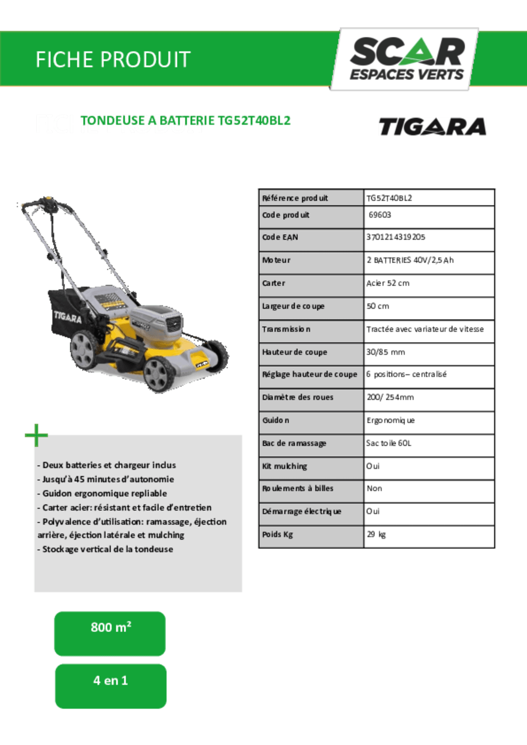 | Largeur de coupe | 50 cm |