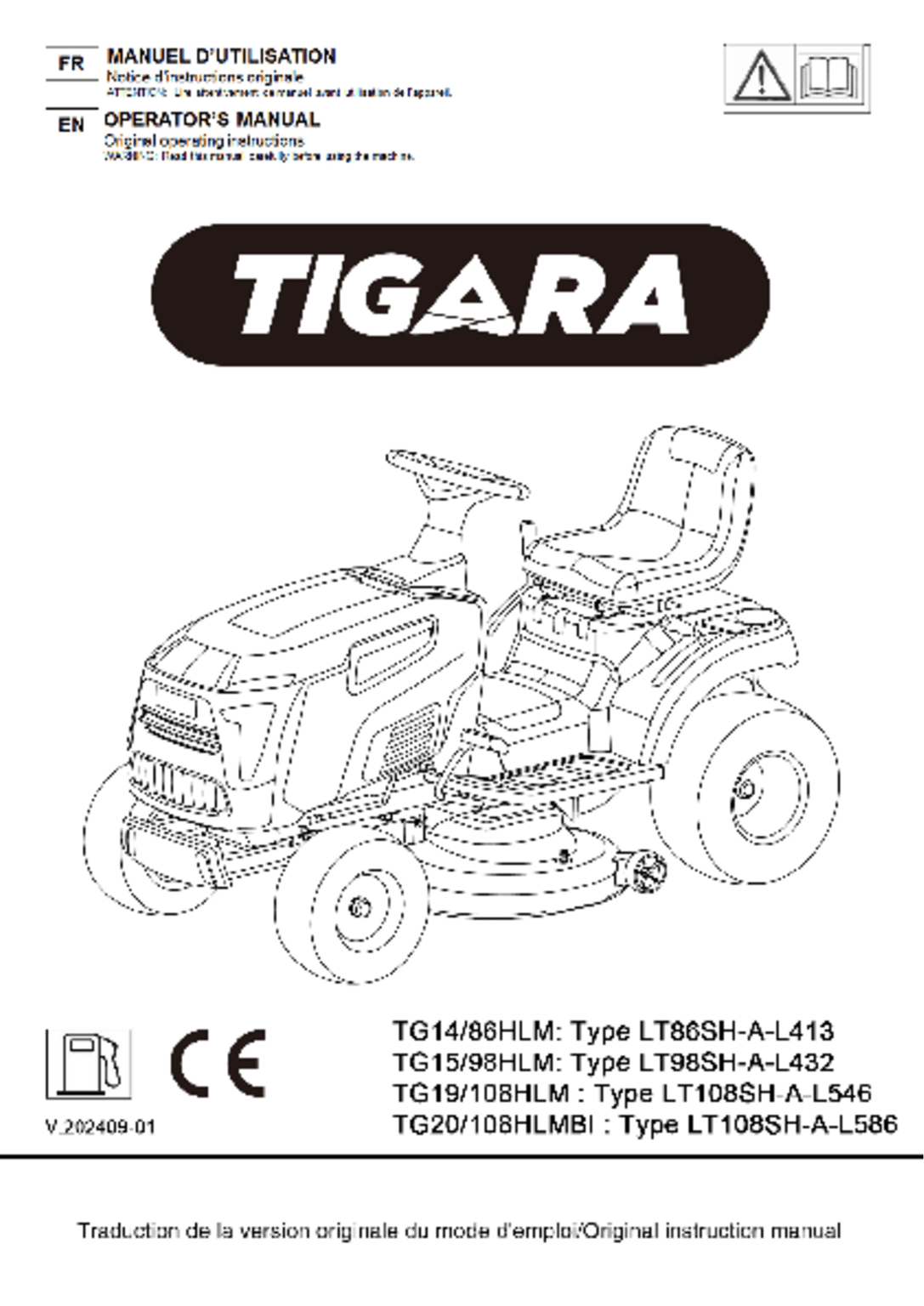 - Tondeuse autoportée à éjection latérale TG 14/86 HLM