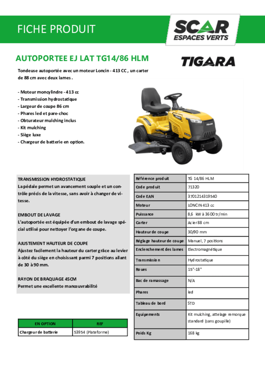 Chargeur de batterie en option.