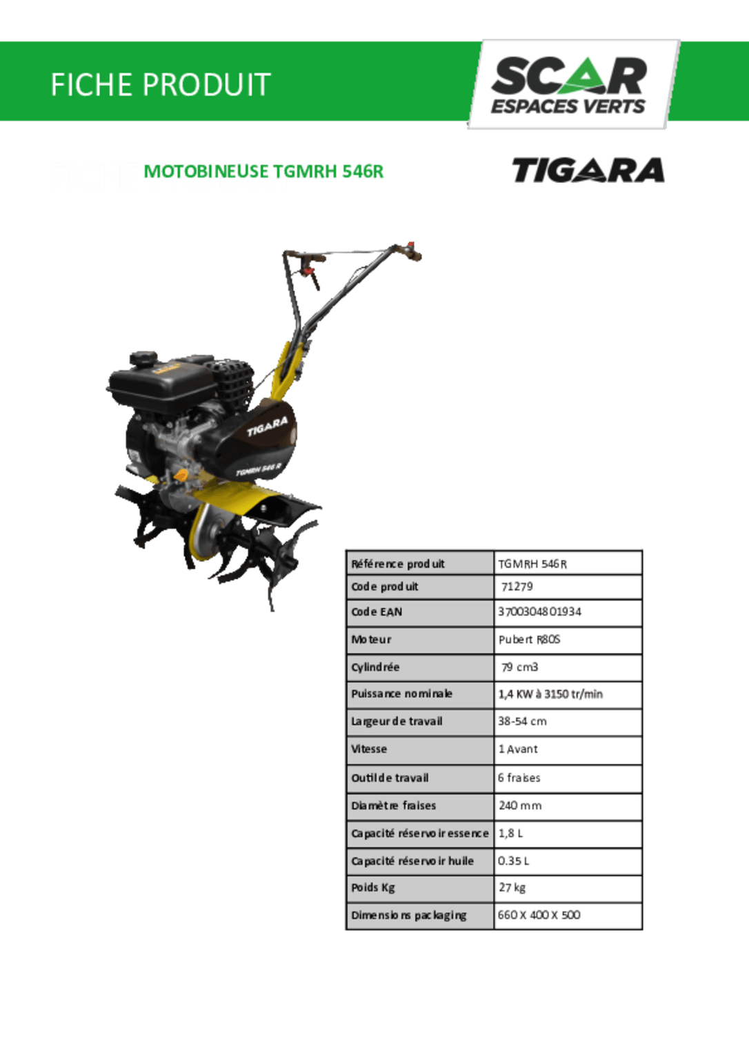 Motobineuse 6 fraises TGMRH 546R
