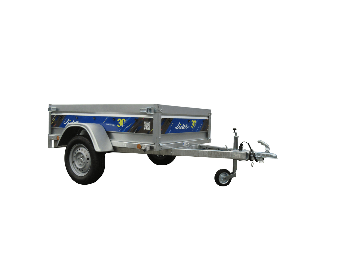 PTAC 500 Kg. Masse à vide 150 Kg. Dimensions utiles 170 x 122 x 39 cm. Roues 165/70R13. Caisse basculante. Roue jockey 48 mm.