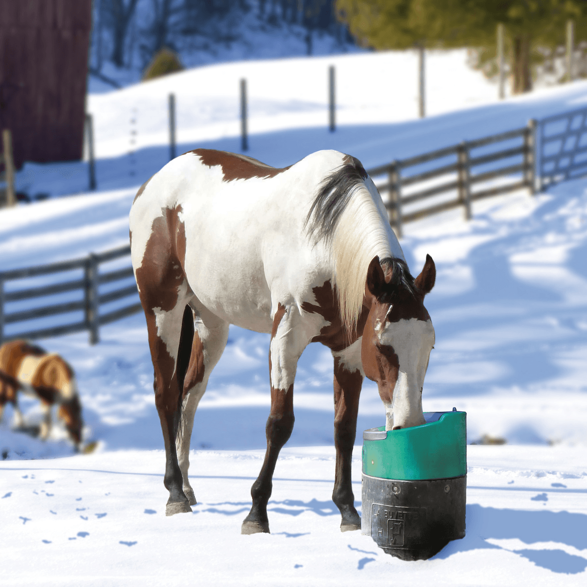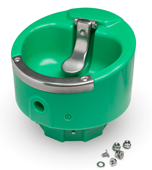 Abreuvoir antigel en polyéthylène avec palette inox. Système antigel 24 V, 50 W. Débit d'eau 13 L/min. Transformateur 230/24 V obligatoire, vendu séparément.
