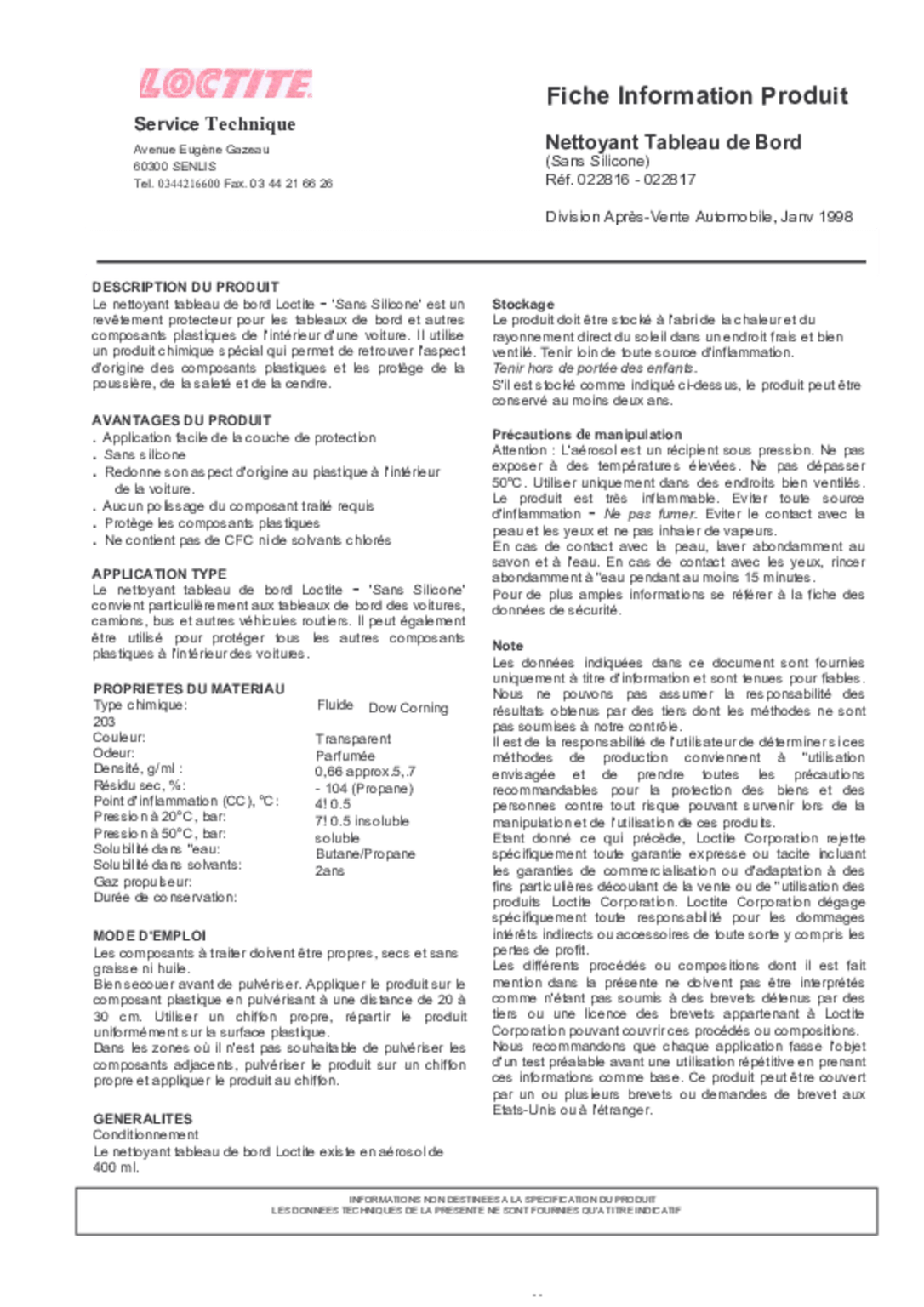 Sans silicone, ne contient pas de CFS ni de solvants chlorés.