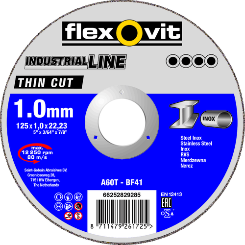 Disque à tronçonner. Moyeu plat. Acier/inox. Formule sans soufre, ni fer, ni chlore. Longue durée de vie. Coupe rapide et franche, sans brûlures, sans bavures. Spécifications : A 30S-BF41/80. Dimensions : 300x3,5x25,4 mm.