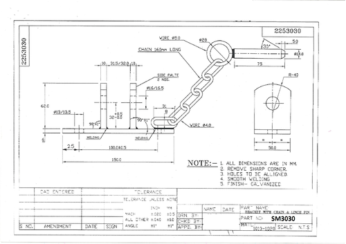 Ø trou : 14 mm. Entre-axe : 100 mm.