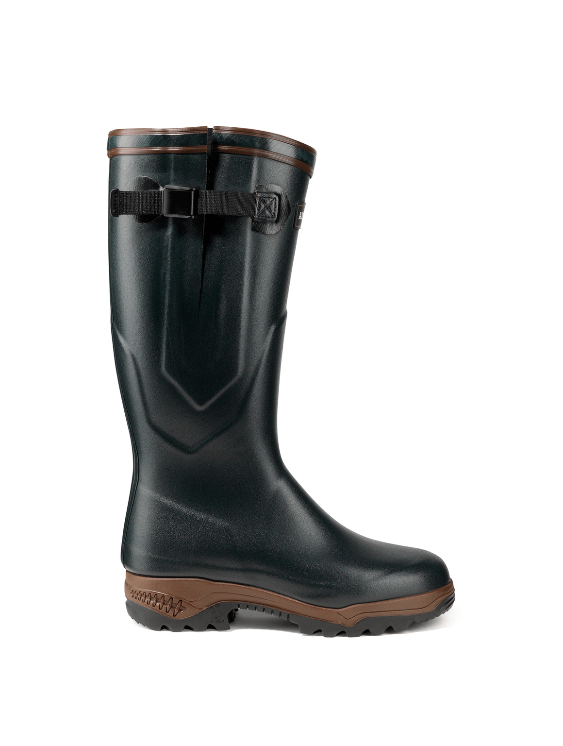 Bottes doublées bronze en caoutchouc anti-fatigue qui isolent du froid. Semelle en tridensité en caoutchouc avec coussin amortissant. Tige en caoutchouc naturel majoritaire. Doublure : confort, grande isolation et séchage rapide. Semelle extérieure à crantage autonettoyant. Forme ajustée à la cheville. Patte de serrage et soufflet étanche et ajustable (plusieurs largeurs de mollets). Pointures du 39 au 48.