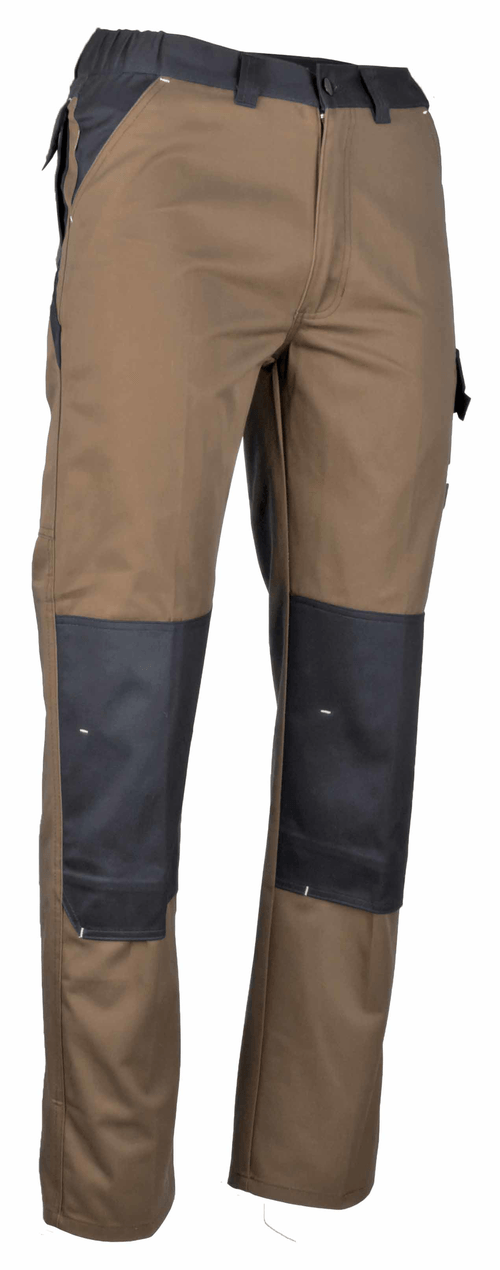60 % coton, 40 % polyester. 280 g/m². Ceinture contrastante élastiquée côtés. Tailles du 38 au 50.