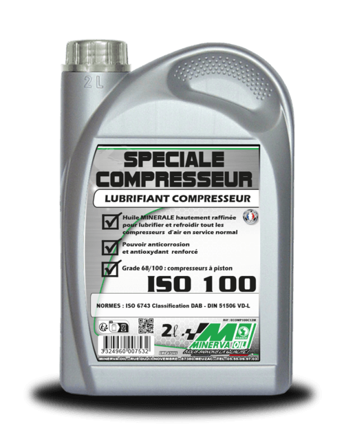Pour lubrifier et refroidir les compresseurs d'air à piston. Bidon 2 L.
