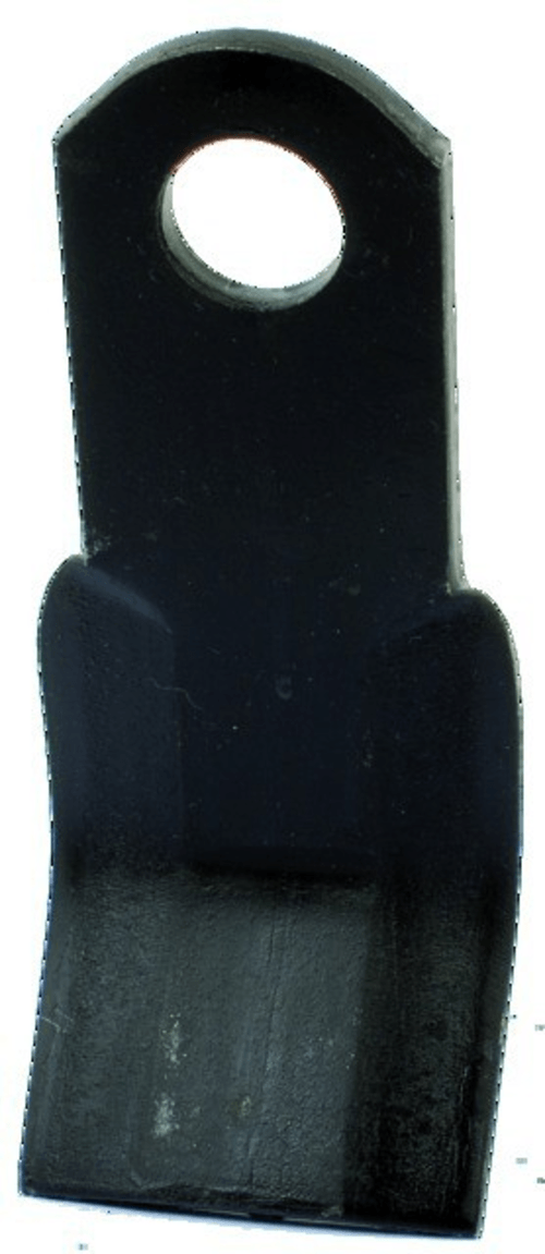 Couteau Universel pour broyeur. Longueur : 142 mm. Largeur : 50 mm. Épaisseur : 10 mm. Diamètre trou : 18,5 mm. Déport : 43 mm. Poids : 0,510 kg.