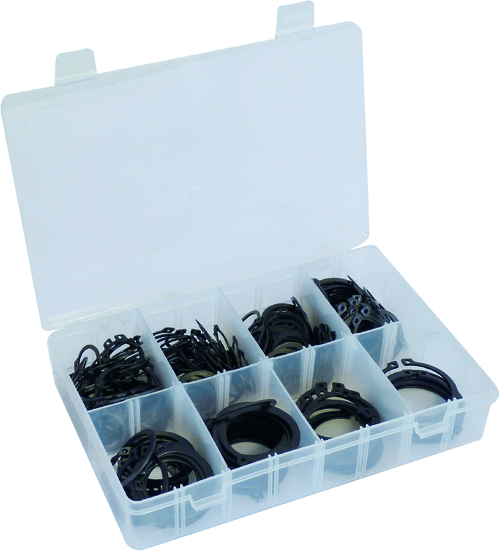 Coffret de 300 circlips intérieurs/extérieurs assortis.