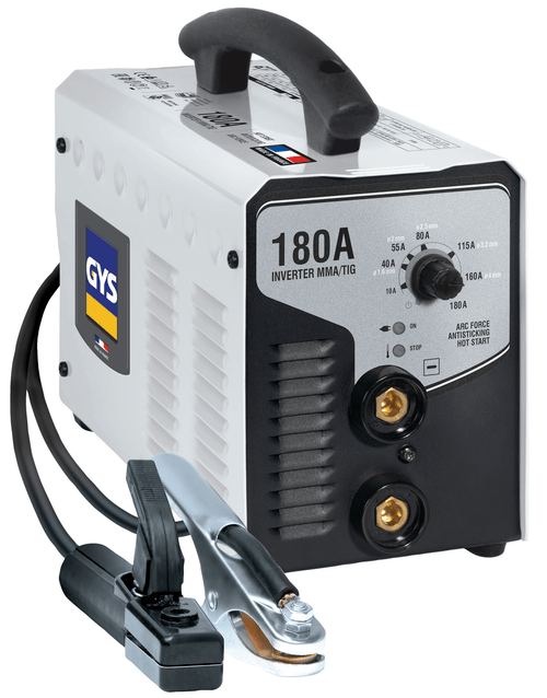 Livré en valise avec accessoires : câble de masse 16 mm² de 1,6 m, porte-électrode 16 mm² de 2 m.